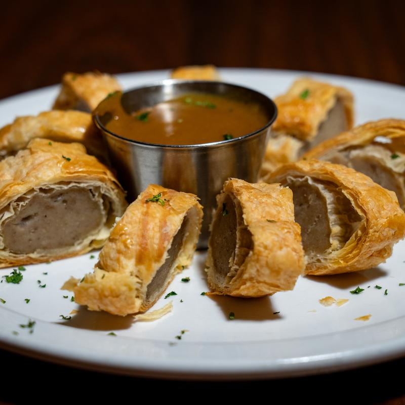 Housemade Traditional Irish Sausage, Golden Puff Pastry, Curry Sauce